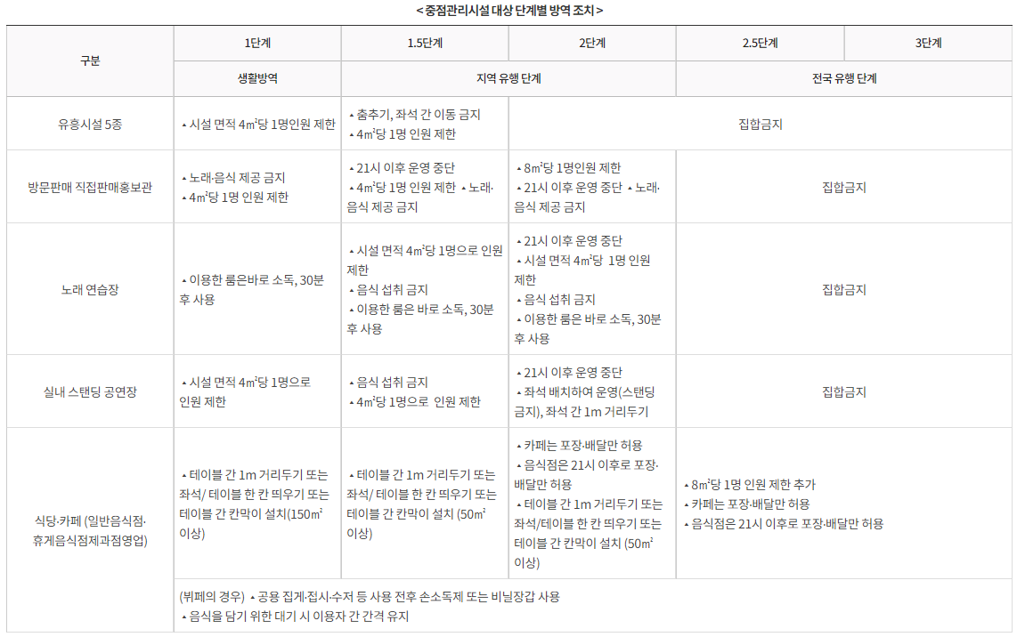 2.5단계에서는 일반관리시설에 대해 오후 9시 이후 운영 중단의 조치가 실시됩니다.